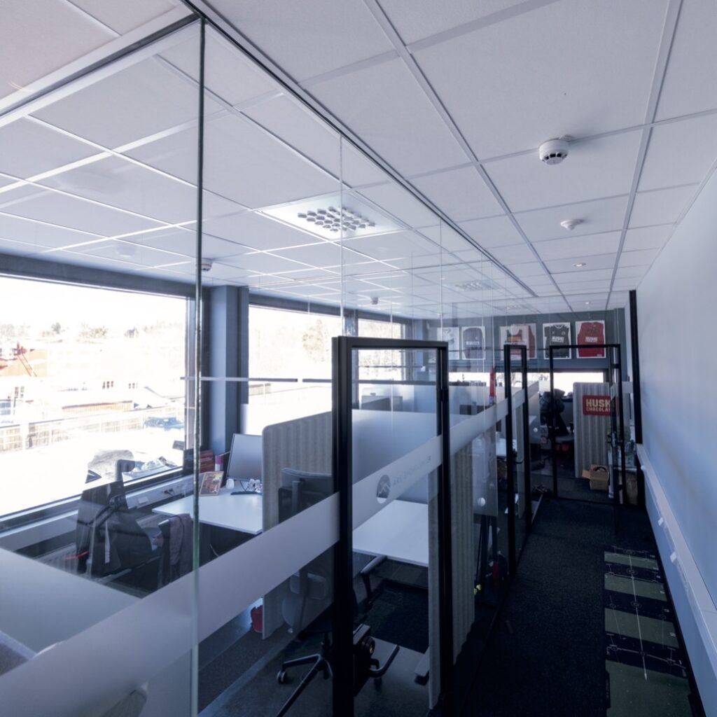 Totalt finns det cirka 30 arbetsplatser fördelade i öppen planlösning och kontorsrum.